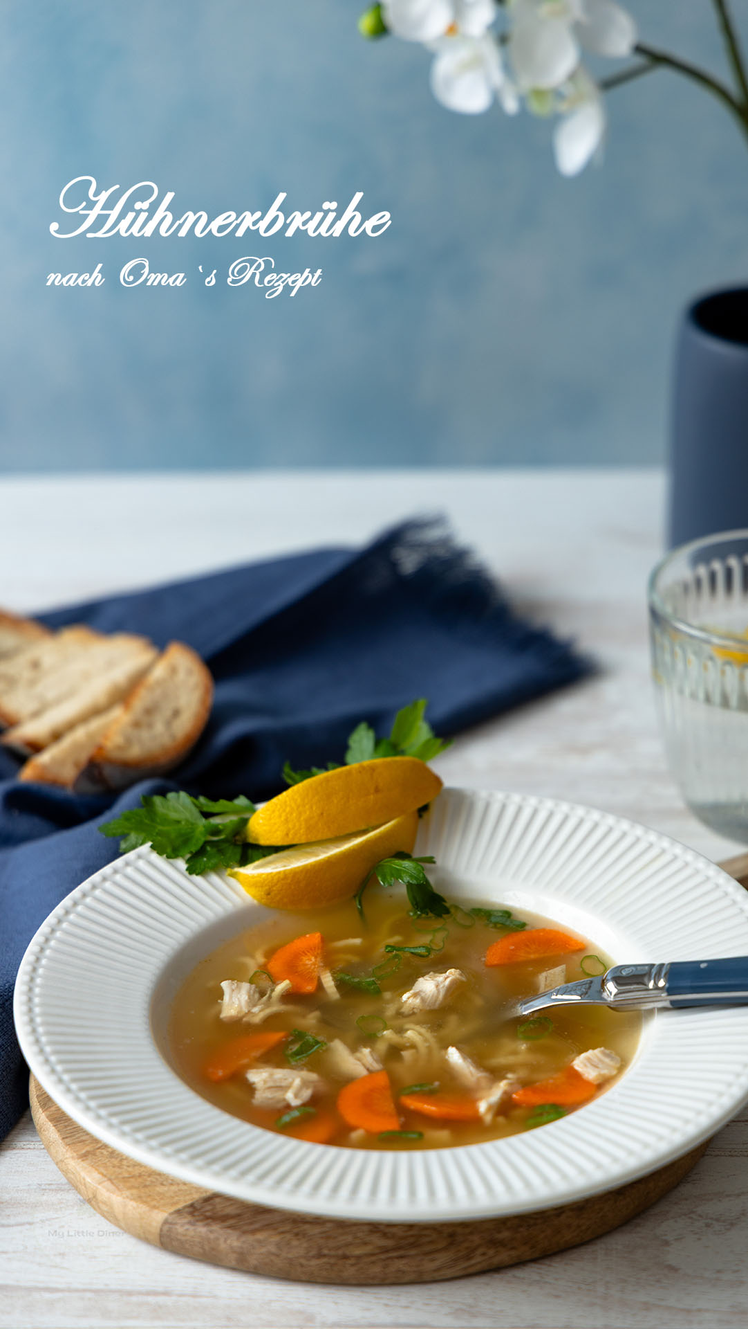 Inzwischen bereite ich es selbst für meine Familie zu und bin mir sicher, dass meine „Feinschmecker“ es später ebenso mit schönen Augenblicken verbinden werden. Wenn man als Basis die Hühnersuppe zuvor auch selber macht (so wie es früher stets üblich war), braucht die Zubereitung natürlich etwas länger – aber den Unterschied schmeckt man eben auch.